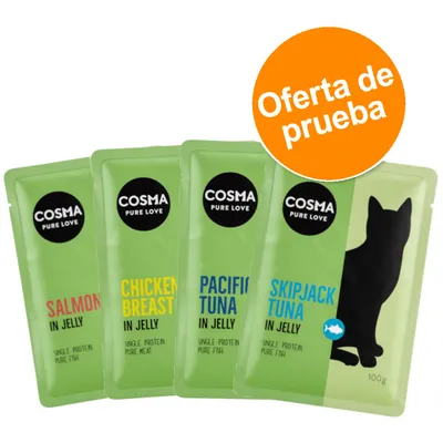 Cosma Original en gelatina es una comida húmeda para gatos elaborada con jugosa carne o pescado delicado, envueltos en una gelatina exquisita. Cada variedad contiene una sola fuente de proteínas. Gracias al cuidadoso proceso de elaboración, los ingredientes de alta calidad mantienen su sabor natural y los nutrientes importantes para que tu gato disfrute de una experiencia culinaria única. Este complemento alimenticio no contiene aromas, conservantes ni colorantes. Las prácticas bolsitas de Cosma Original conservan el frescor y te ayudan a racionar la comida. ¡Cosma tiene un sabor irresistible incluso para los paladares más exigentes!